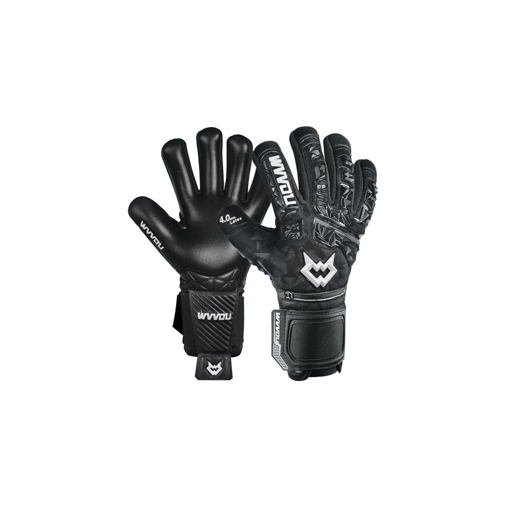 WVVOU Football Goalkeeper Gloves for Adults and Youth, High Performance Football Gloves with 5 Detachable Fingersave, Goalie Gloves with 4mm Sticky Latex Palm (Black, 7)