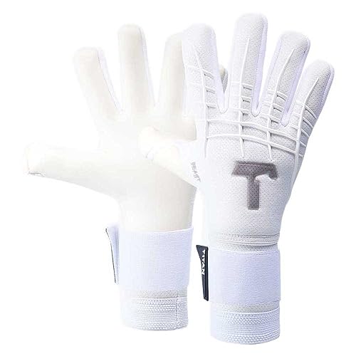 T1TAN White Beast 3.0 - Goalkeeper Gloves without Finger Protection - Football Gloves for Teenagers and Adults Unisex - Hybrid Flat Cut and 4 mm Gecko Grip - Size 10