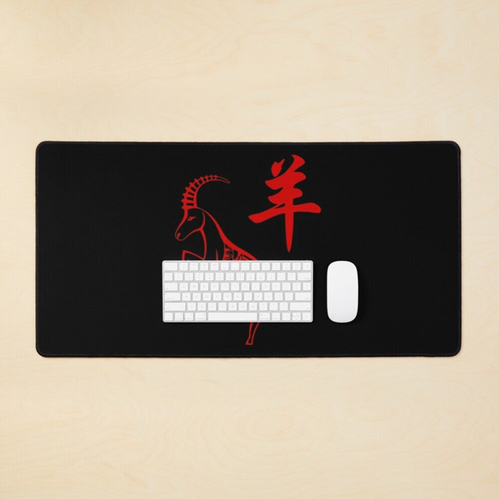 Desk Mat Chinese Zodiac Sign Goat - Year Of The Goat Large Gaming Mouse Pad 35x16 inch