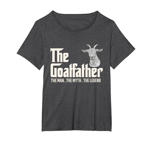 The Goatfather Farm Animal Farmer Rancher Goat Dad Lover T-Shirt, Women's Plus, Dark Heather Grey, 2X