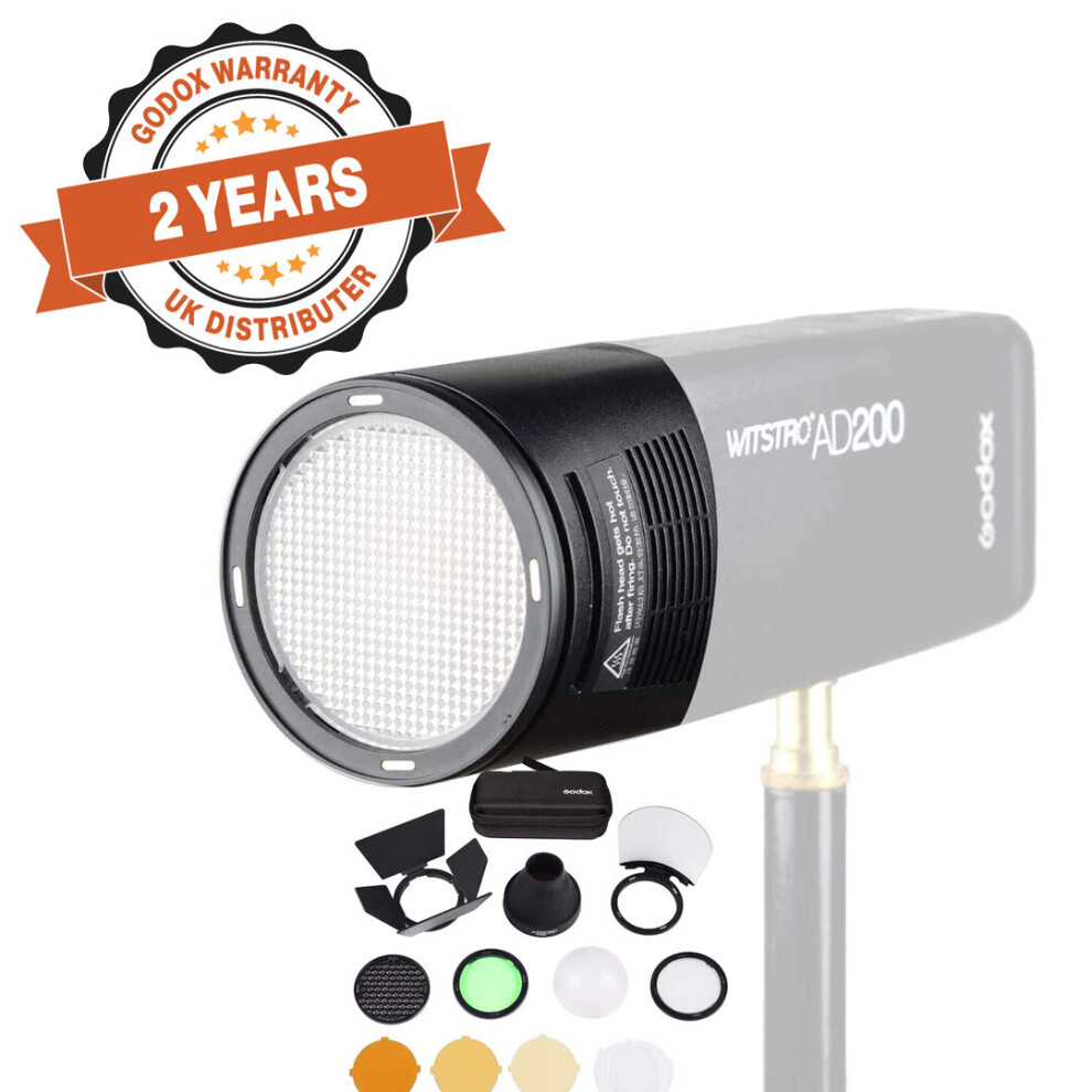 UK Godox 2.4 TTL HSS AD200 1/8000s Flash+H200R Head+EC200 Cable+AK-R1 Filter Kit
