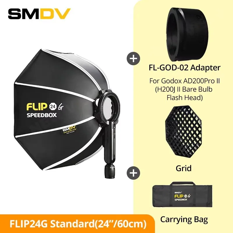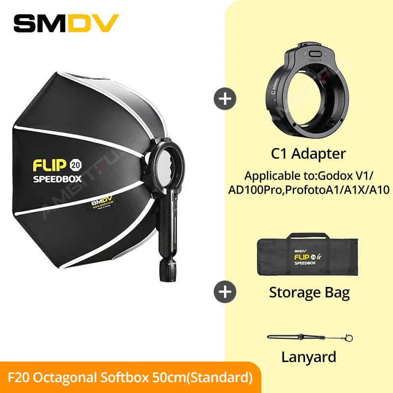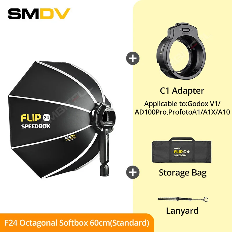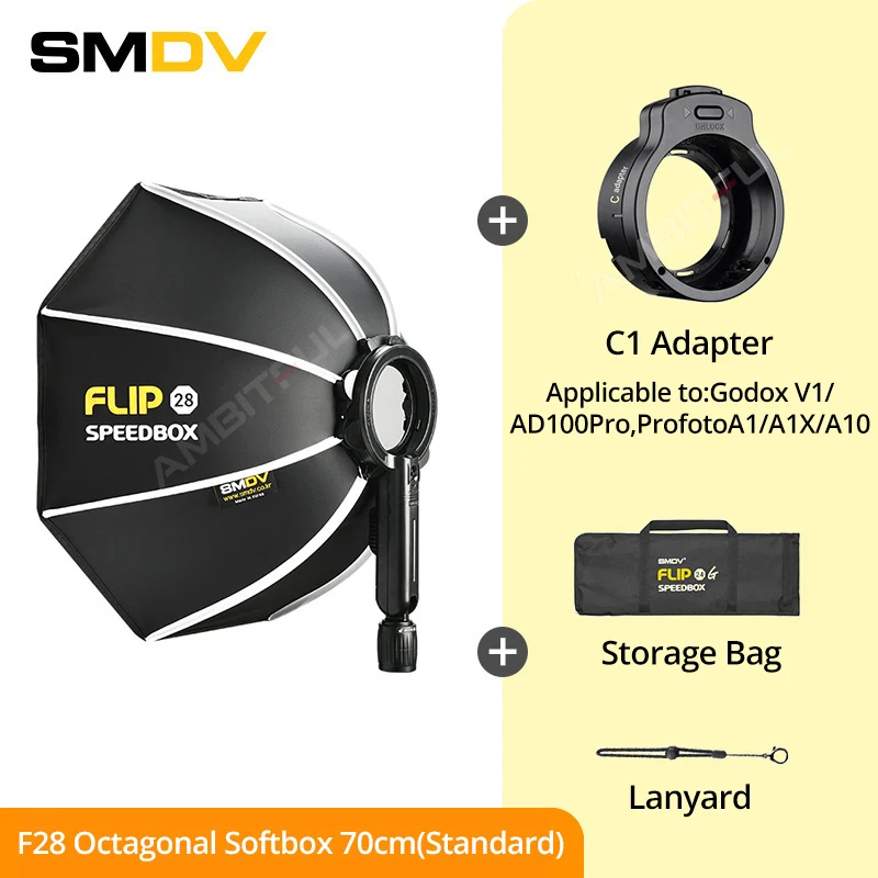 SMDV Flip 20 24 28 Quickly Release Parabolic Out Door Softbox for A1 Godox V1 AD