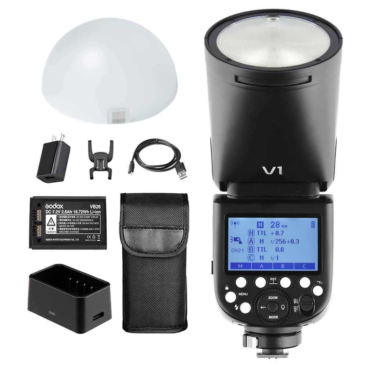 Godox V1 Canon Round Head Speedlight Flash, 480 Full Power | AK-R11 & V-11 C |