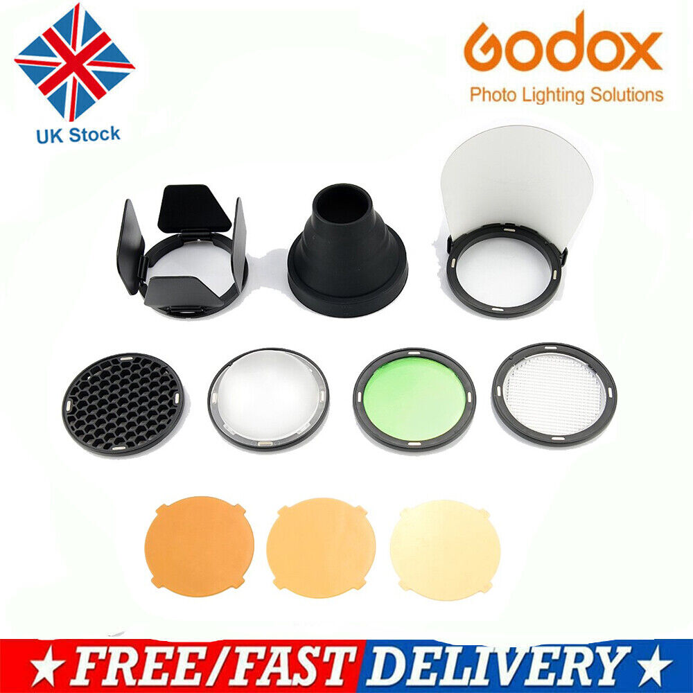 UK Godox AK-R1 Barn Door Snoot Color Filter Reflector Honeycomb For AD200 V1