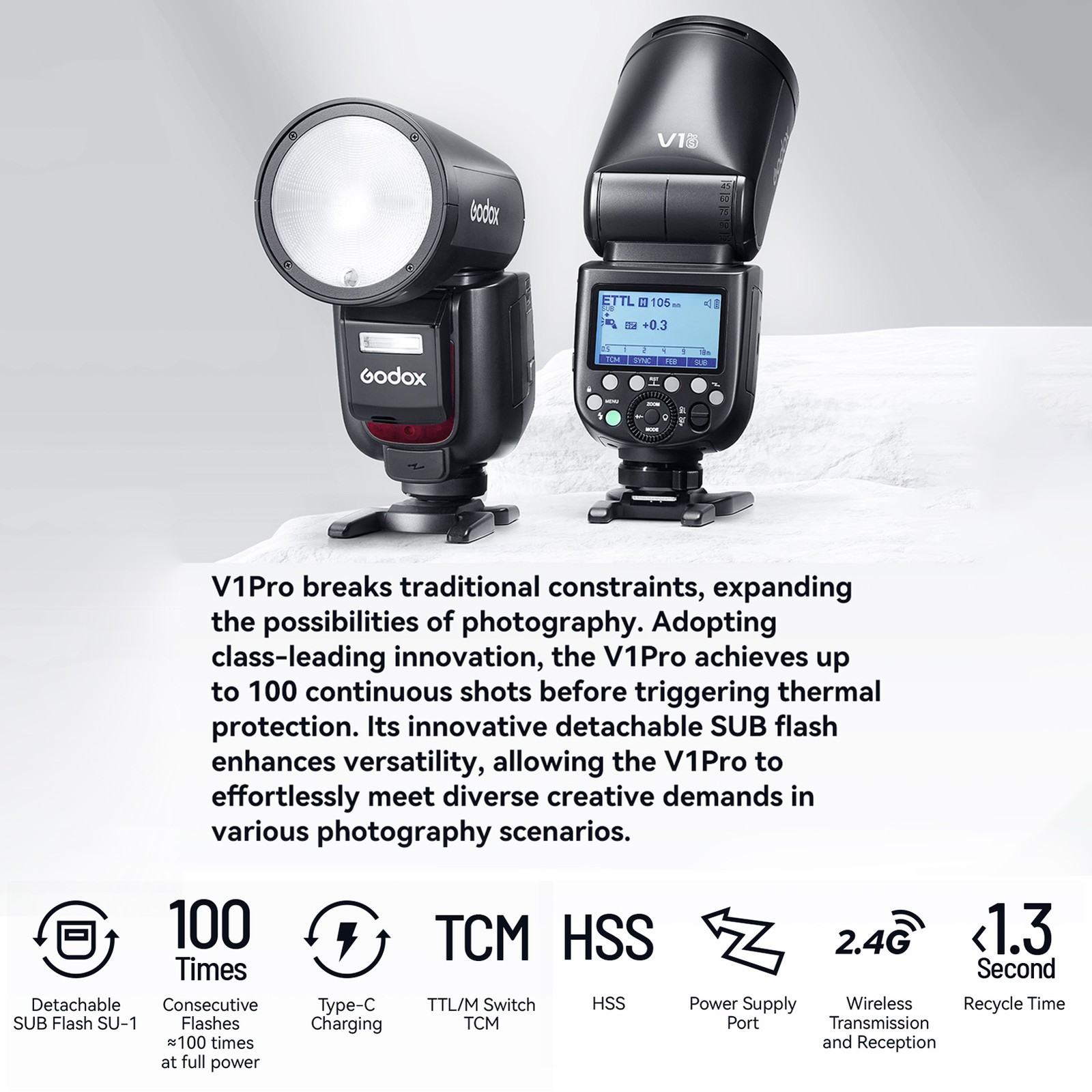 GODOX V1 Pro Camera Flash For 100 Continuous Shots Innovative TTL/M Mode