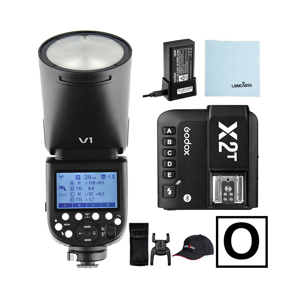 Godox Flash Strobe V1-Olympus Camera Speedlite Round Head with X2T Wireless Transmitter