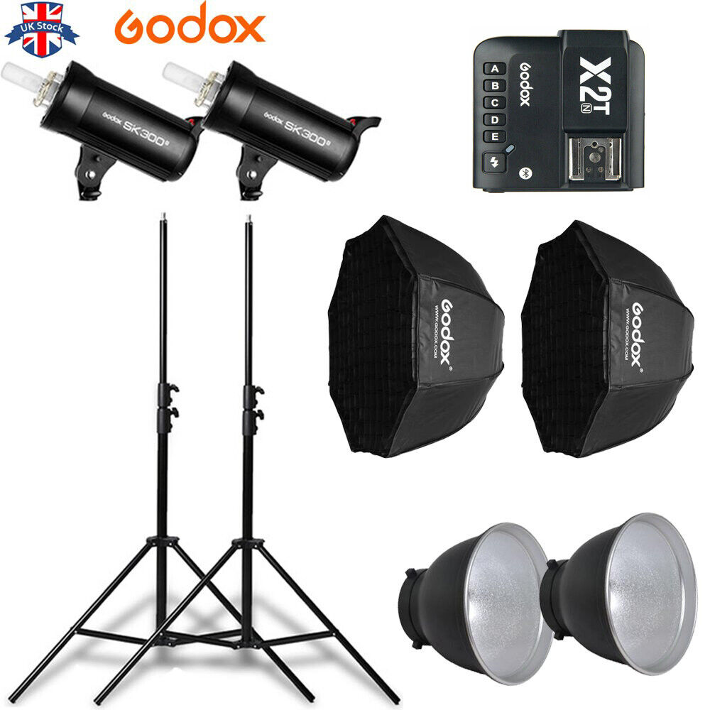 Godox 2* SK300II 300W 2.4G Flash+95cm FW softbox+light stand+X2T-N for Nikon UK