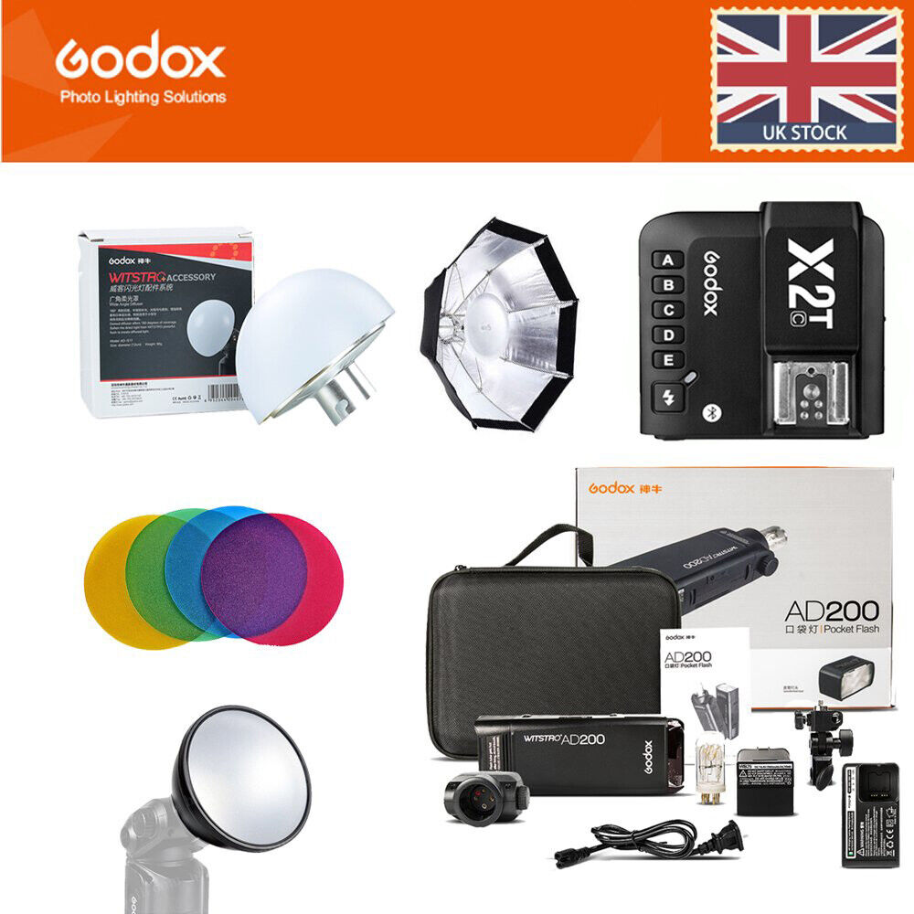 Godox 200Ws TTL 2.4G HSS 1/8000s Pocket speedlite Flash + X2T-C +Softbox Kit UK