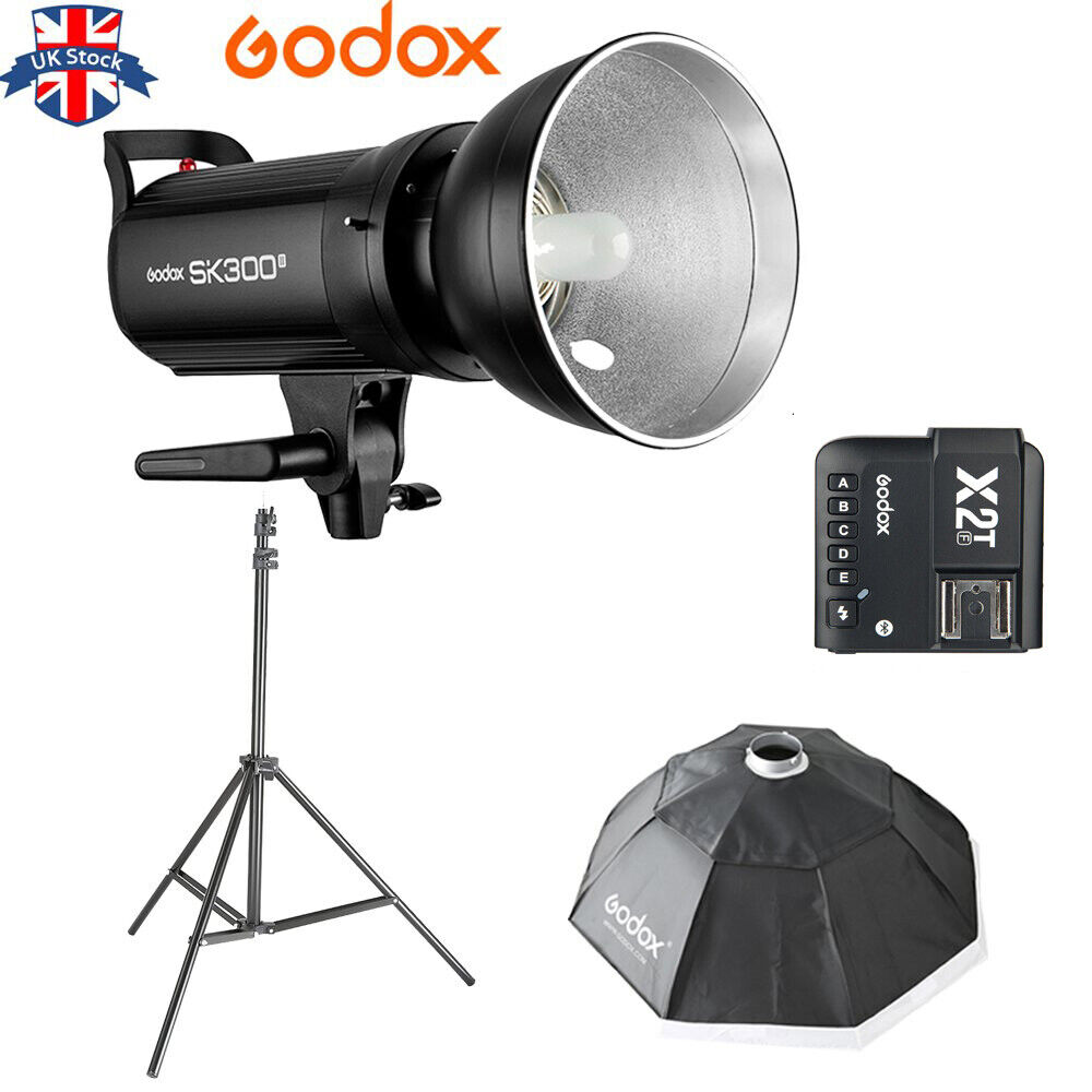 UK Godox SK300II 300W 2.4G Flash Strobe+95cm softbox+light stand+X2T-F for Fuji
