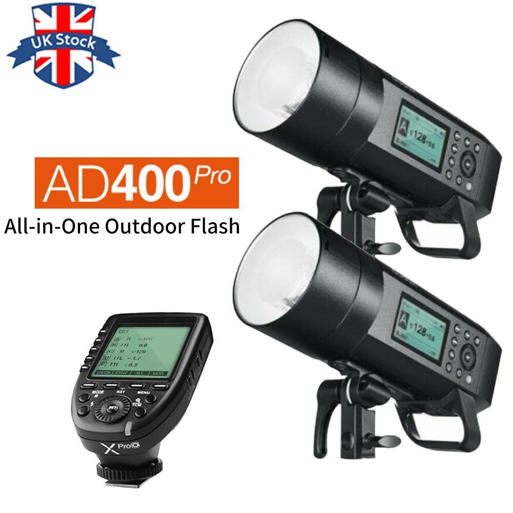 UK 2*Godox AD400Pro 400Ws TTL HSS Outdoor Flash With Xpro Trigger Kit for Studio