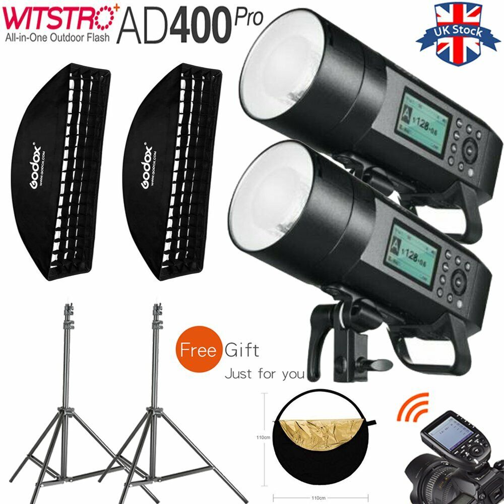 UK 2pcs Godox AD400Pro 400Ws TTL HSS Outdoor Flash+35*160cm softbox+Xpro Trigger
