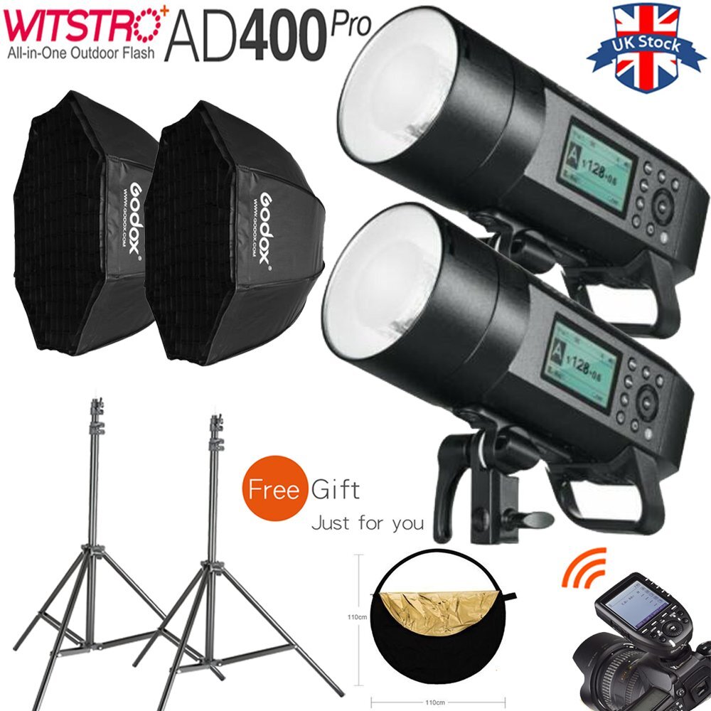 UK 2*Godox AD400Pro 400Ws TTL HSS Outdoor Flash+95cm softbox Stand+Xpro Trigger