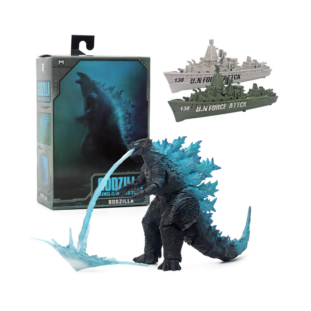 Godzilla x Kong Burning Godzilla Action Figures Movable Joints Blue with Warship