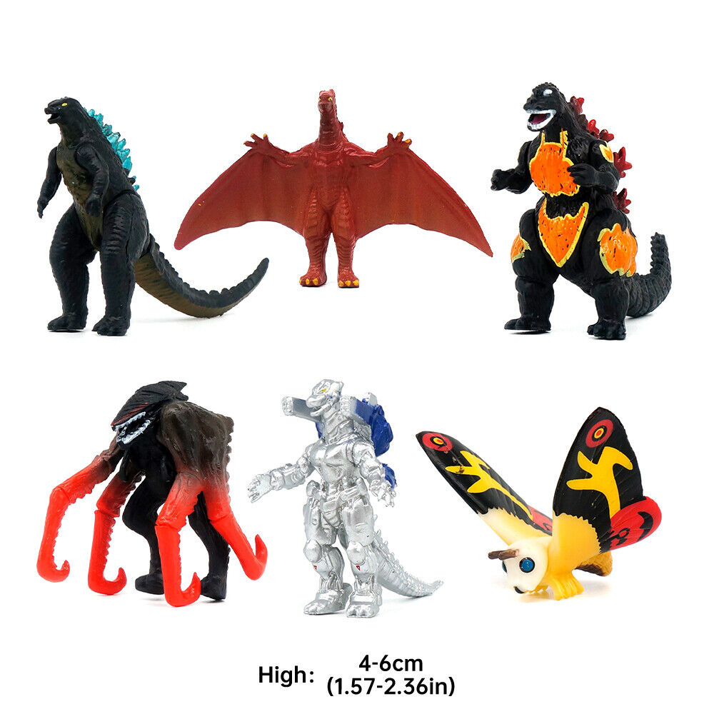 6Pcs/Set Godzilla 2 King Mothra Burning Anguirus Figures Model Kid Toy 2'' PVC