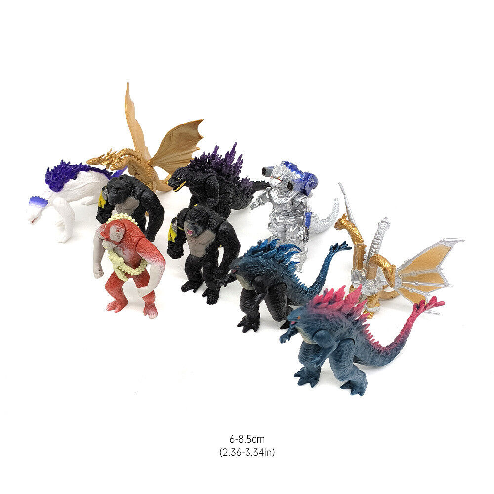 8Pcs Godzilla VS KingKong Ghidorah Mothra 3.5'' PVC Model Figures Toy Kids Gift