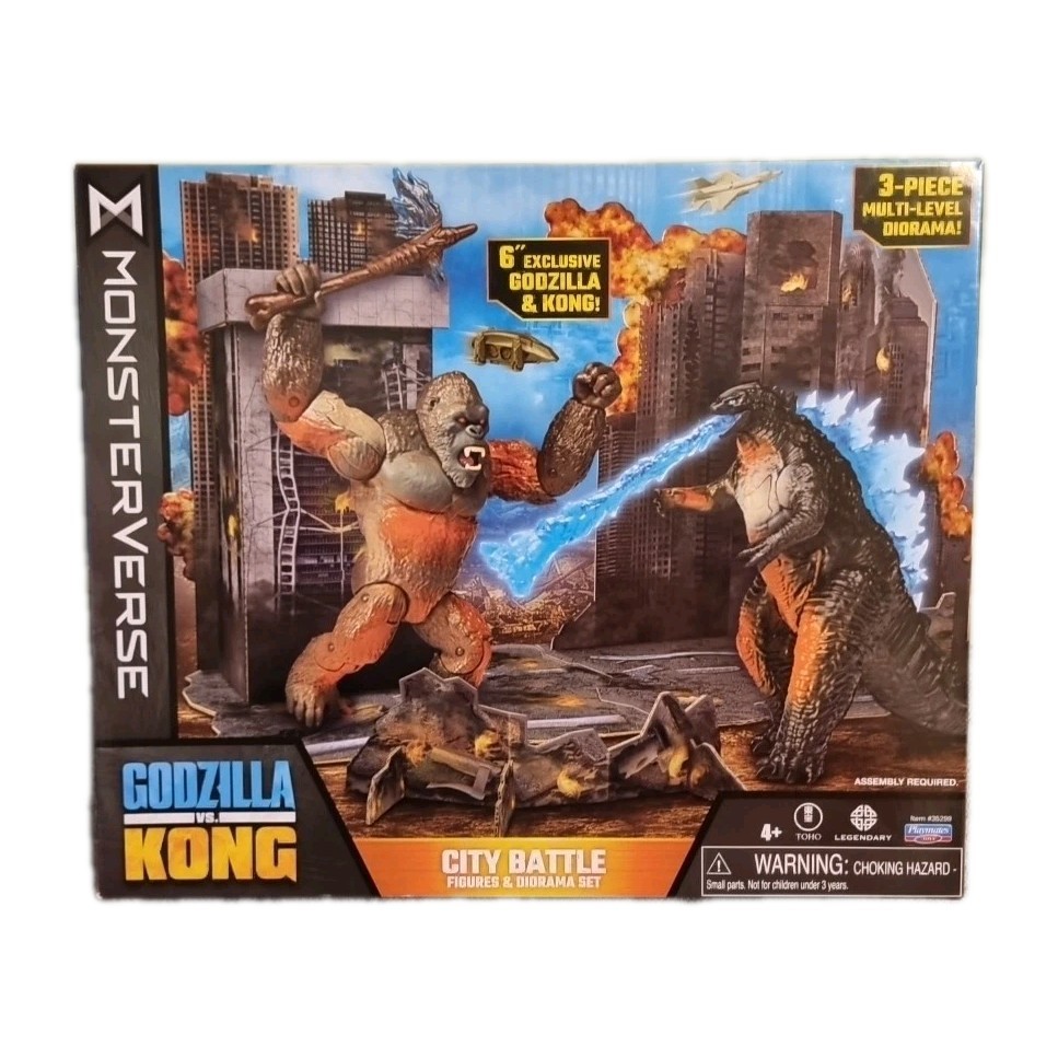 GODZILLA vs KONG ● Monster Verse CITY BATTLE 2 x 6" Figures & 3 Piece Diorama