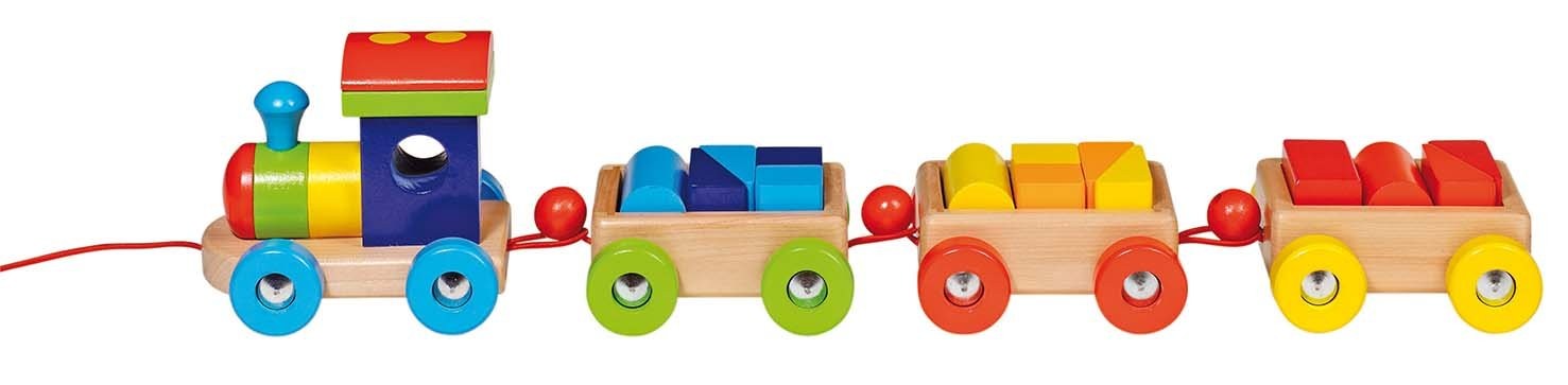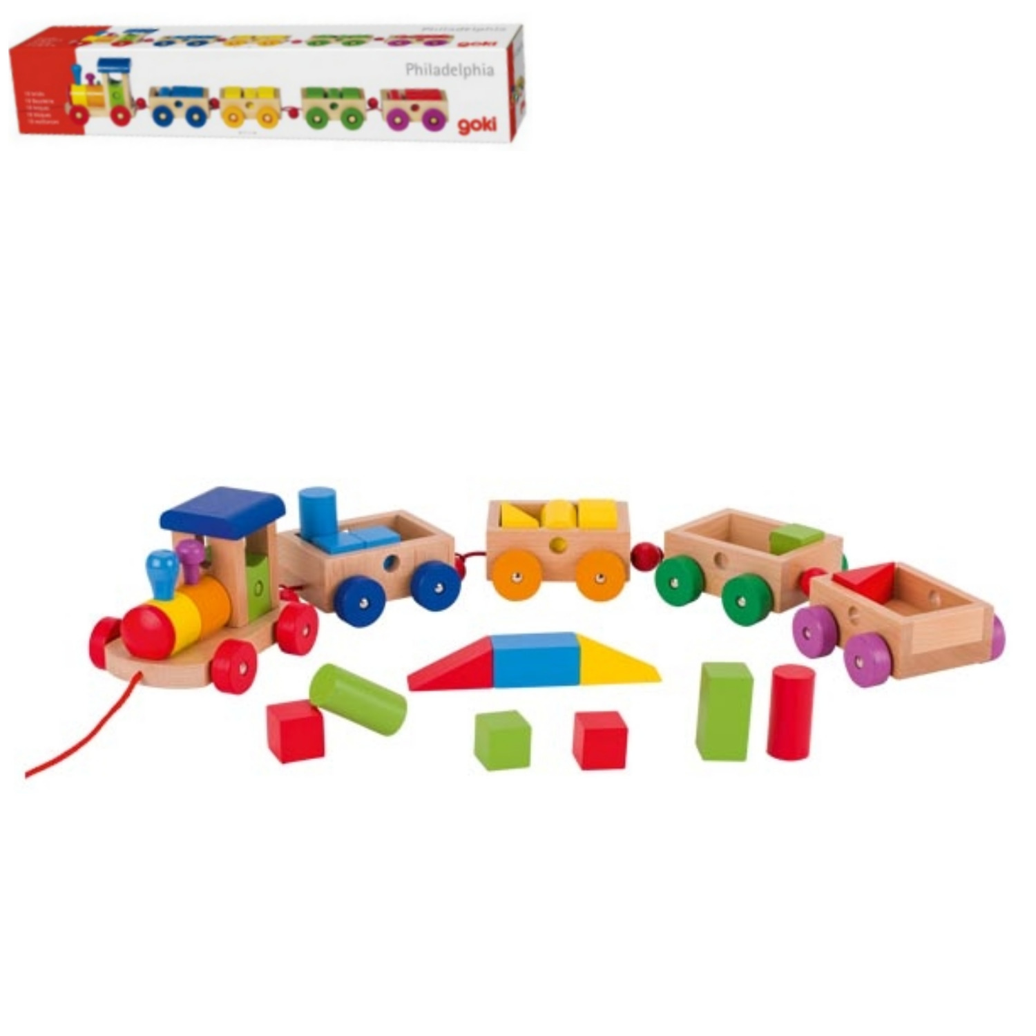 Goki Childrens Philadelphia Wooden Pull Along Train Toy With 18 Wooden Bricks