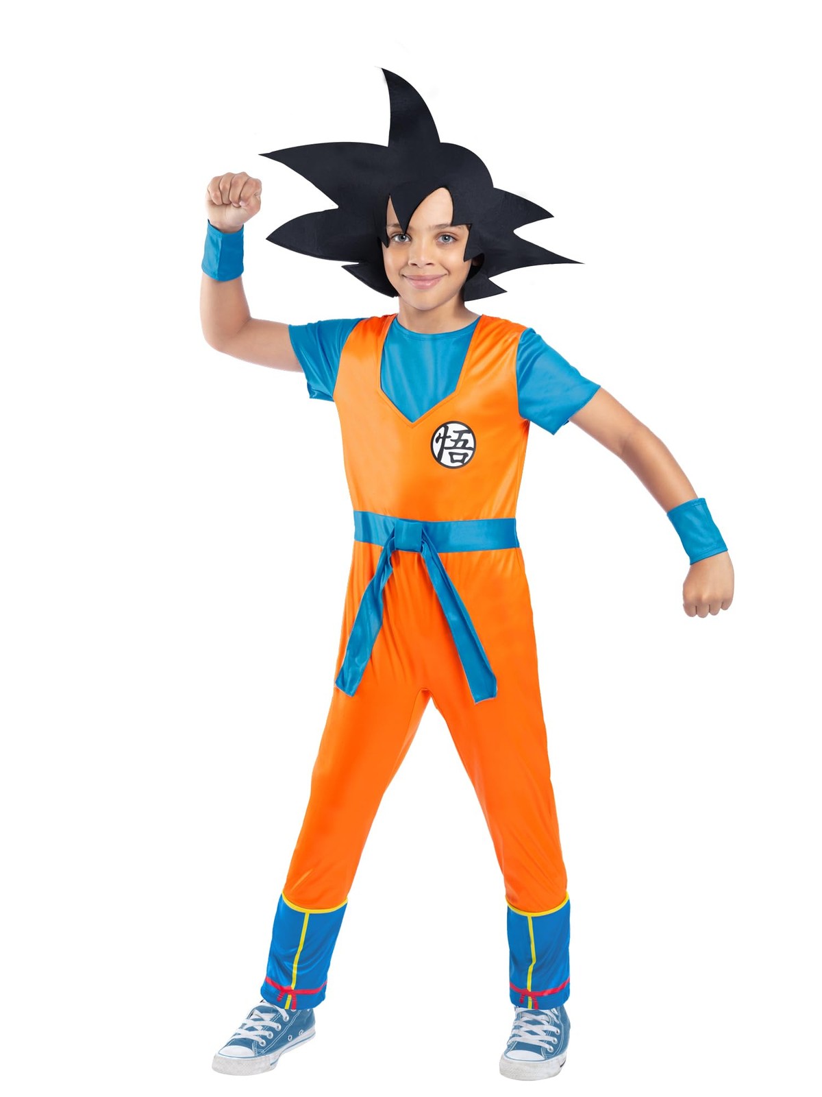 Smiffys Dragon Ball Z Goku Costume Kids, Official Licensed Anime Fancy Dress, Orange Blue Jumpsuit, Wristbands & Spiky Black Goku Headpiece, Boys Saiyan Cosplay Outfit Halloween, Parties Age 7-9