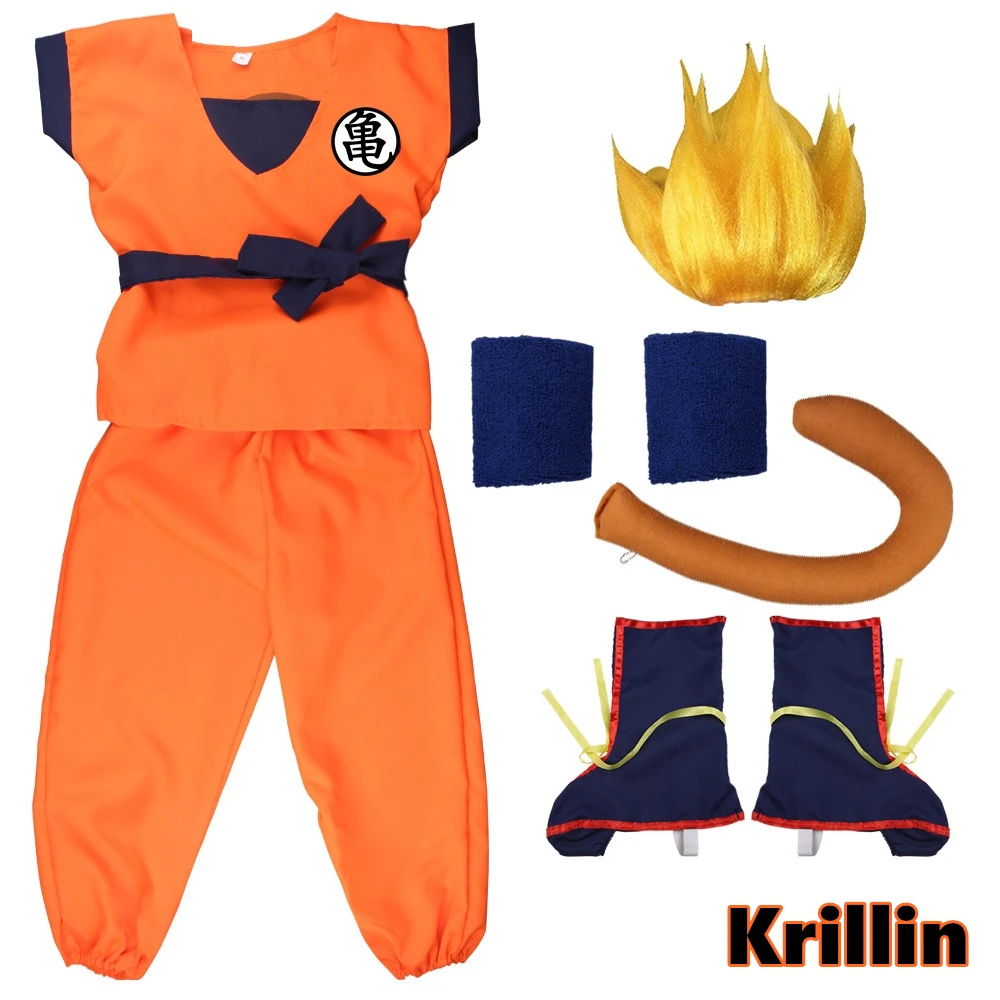 Halloween Son Goku Costume for Adults & Kids: Blue Gold Cosplay, Wig, Tail, Wris