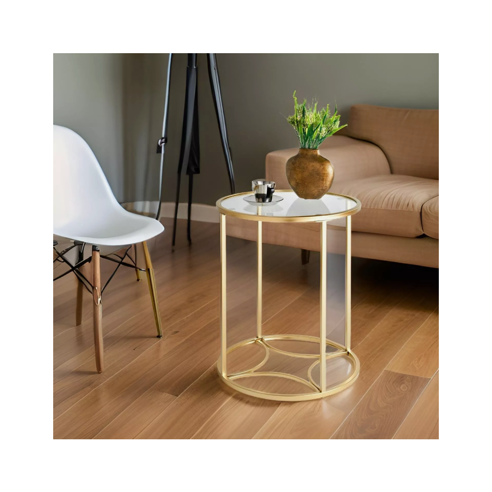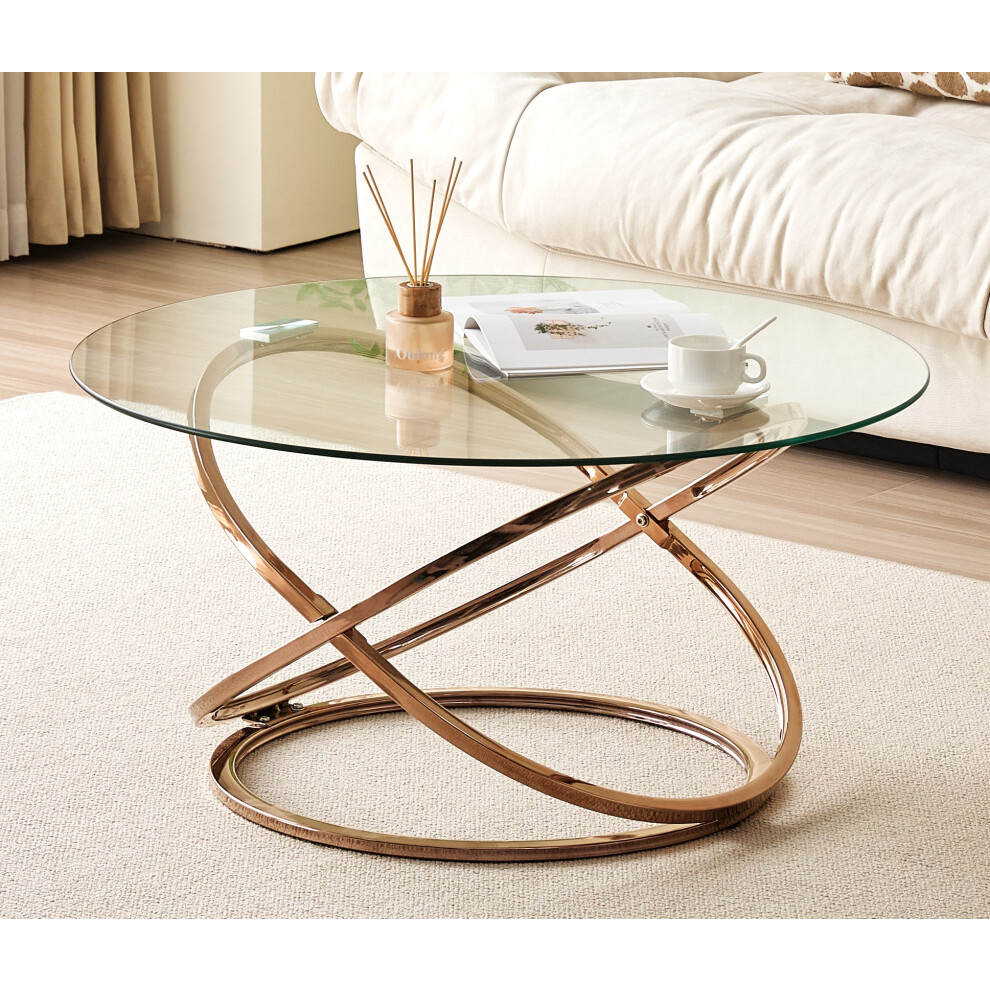 Elegant Round Gold Framed Glass Coffee Table Modern Minimalist Design