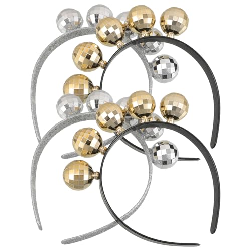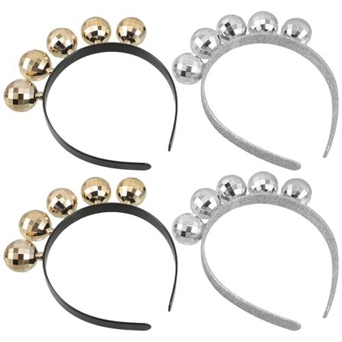 TOGEVAL 4pcs Disco Ball Headbands Set, Silver and Gold Mirror Ball Hair Hoops, Festive Disco Hair Accessories for 70s Theme Parties, Birthdays, Bachelorette and Holiday Celebrations