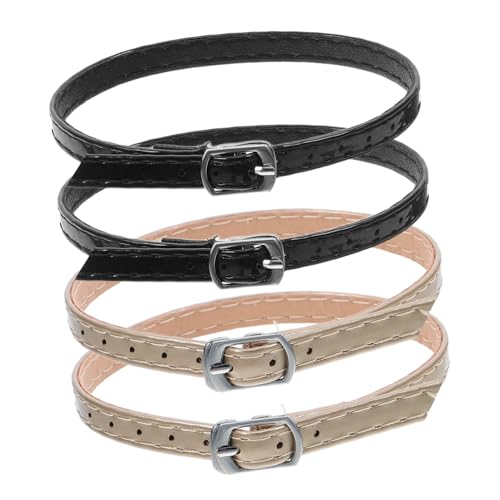 NOLITOY 4 Pairs Adjustable Shoe Straps for Women High Heels and Sandals Detachable Faux Leather Ankle Wraps Anti-loose Shoelaces with Gold and Mirror Black Buckle Chic Ankle Accessories