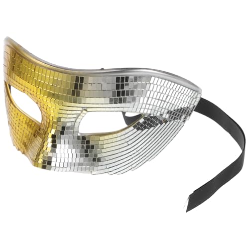 Warmhm Disco Mirrored Face Mask for Adults Sparkly Half Face with Gradient Gold and Silver Reflective Mirror Effect Reusable Glitter Costume Party Mask for Halloween Dj Club Birthday and
