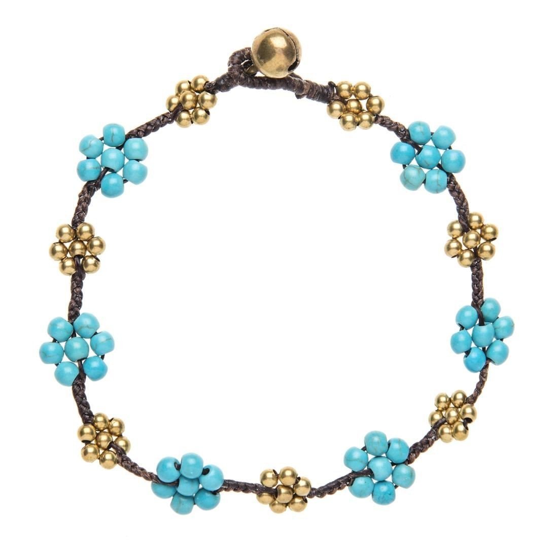 81stgeneration Ankle Bracelet Gold Brass Anklet Turquoise Flower Bead Bell