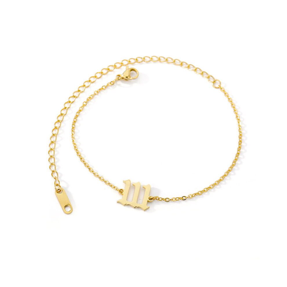 (Gold) Gothic Angel Number Anklets For Men Women Stainless Steel Devil 111 222 333 Ankle Bracelet Minimalist Birthday Jewelry Gift