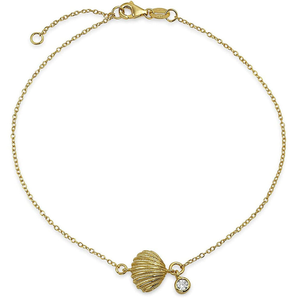 Bling Jewelry Nautical Seashell Clam Shell CZ Accent Anklet Ankle Bracelet for Women 14K Gold Plated Sterling Silver 9-10 Inch