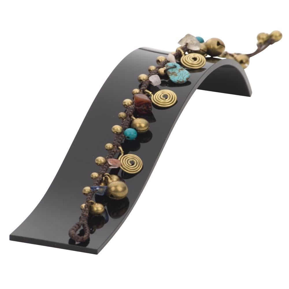 81stgeneration Gold Anklet Brass Gemstone Bell Spiral Bead Ankle Bracelet