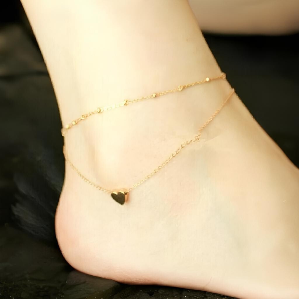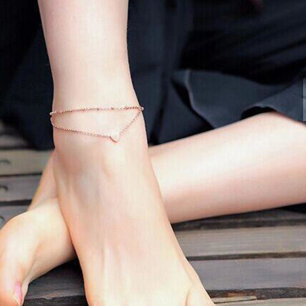 Heart Ankle Bracelet 9k Gold Plated Wedding Anklet Foot Chain Beach Beads Unisex