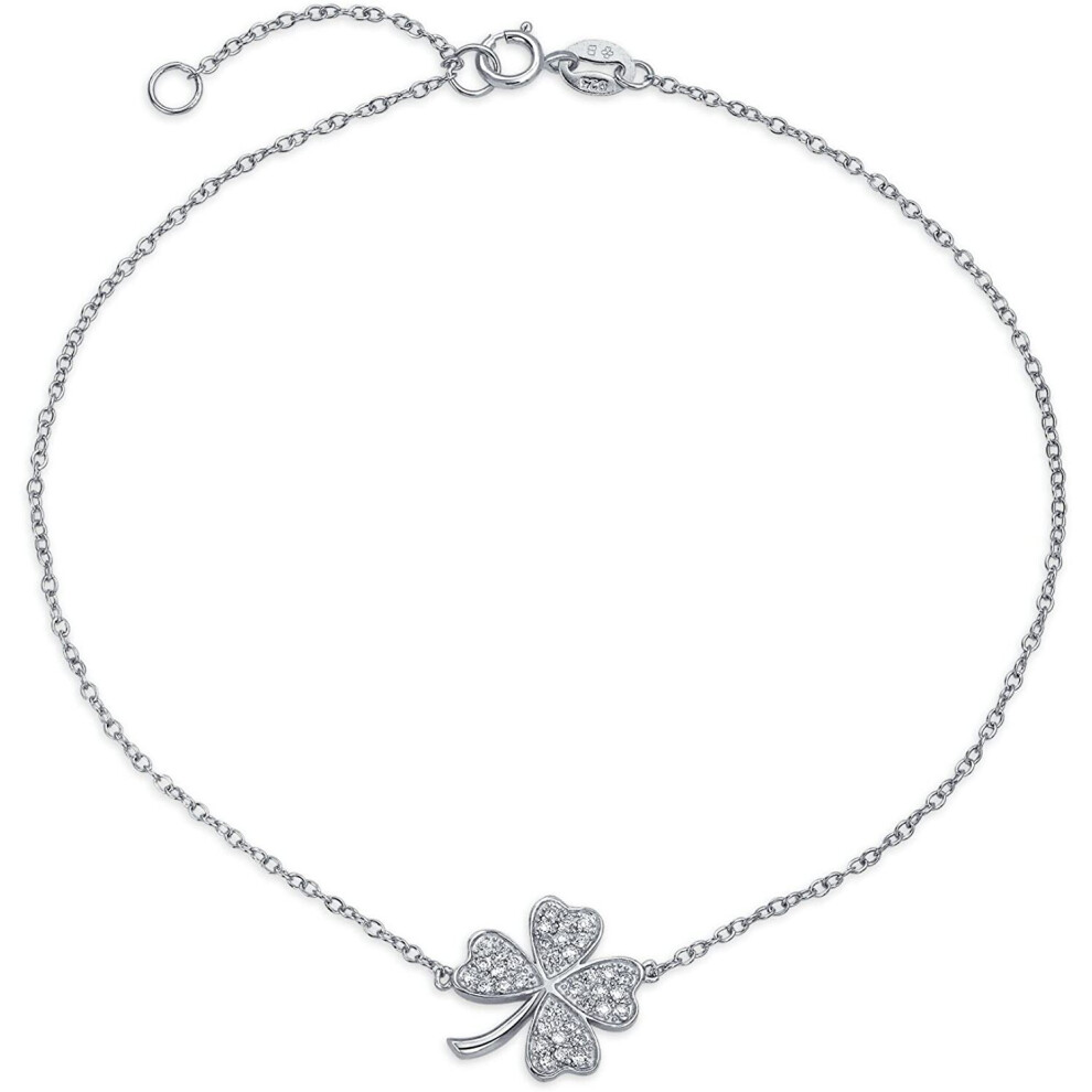 CZ Shamrock Four Leaf Clover Anklet For Teen Ankle Bracelet For Women 14K Gold Plated Sterling Silver 9-10 Inch Extender