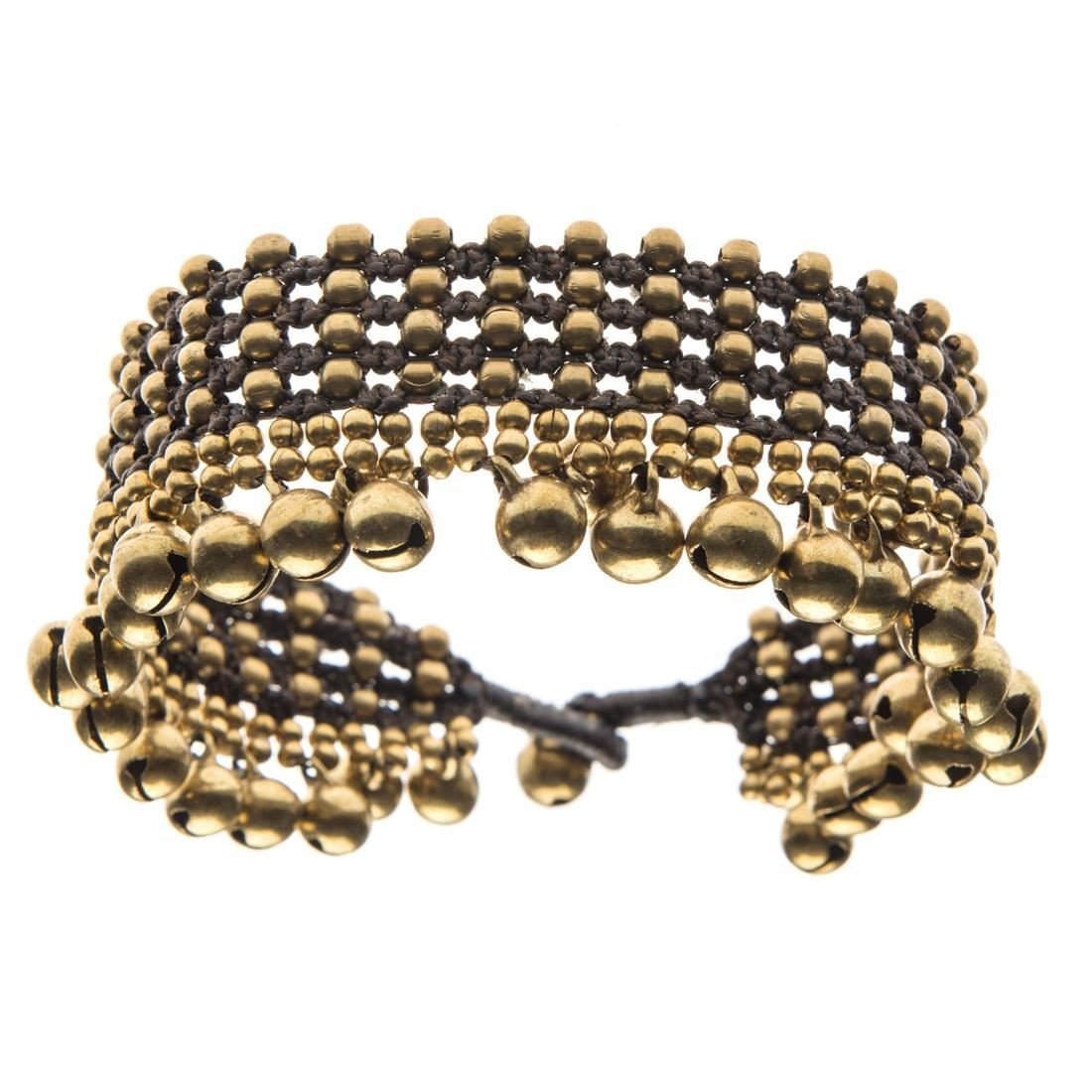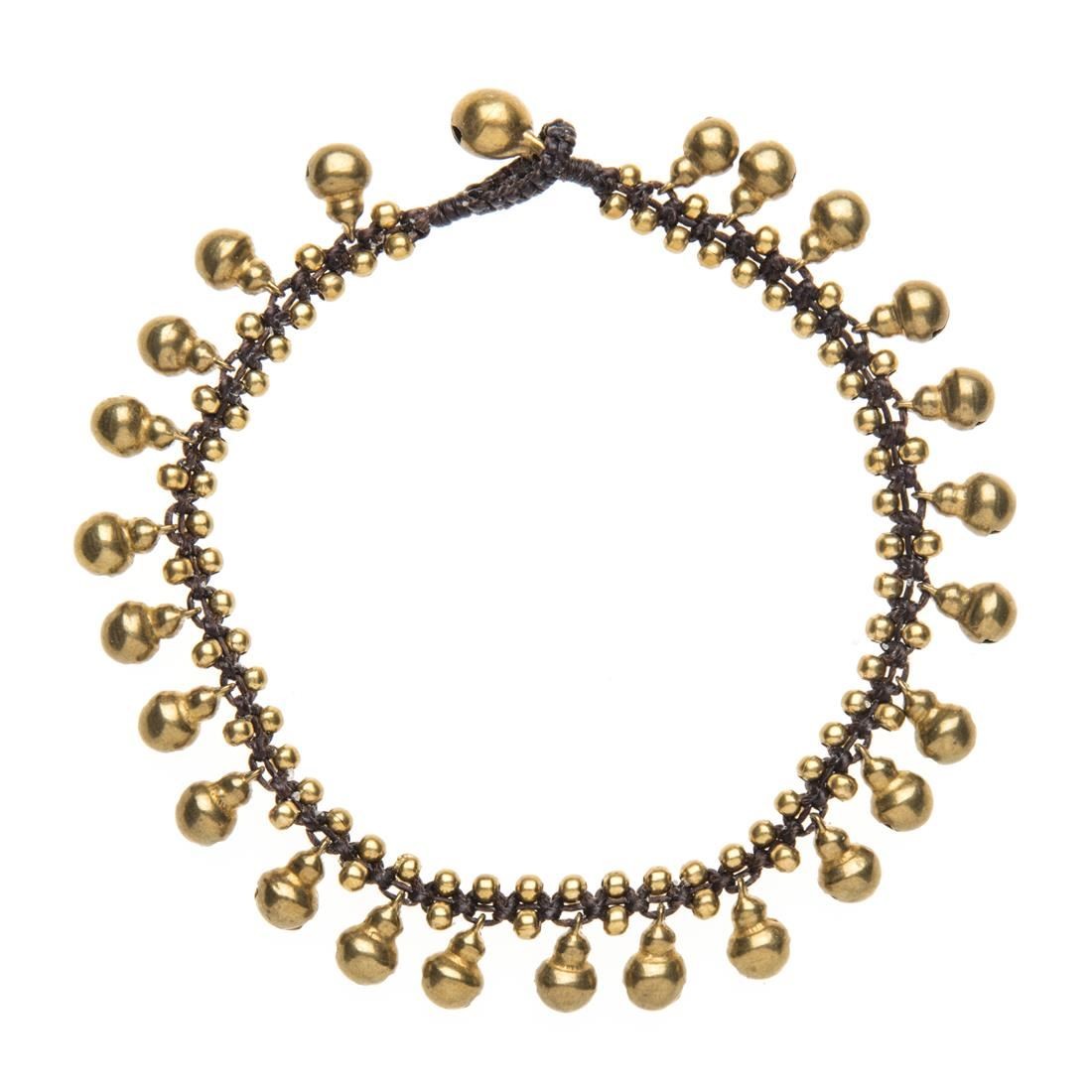 81stgeneration Ankle Bracelet Payal Bell Anklet Gold Brass Beaded Woven Cord