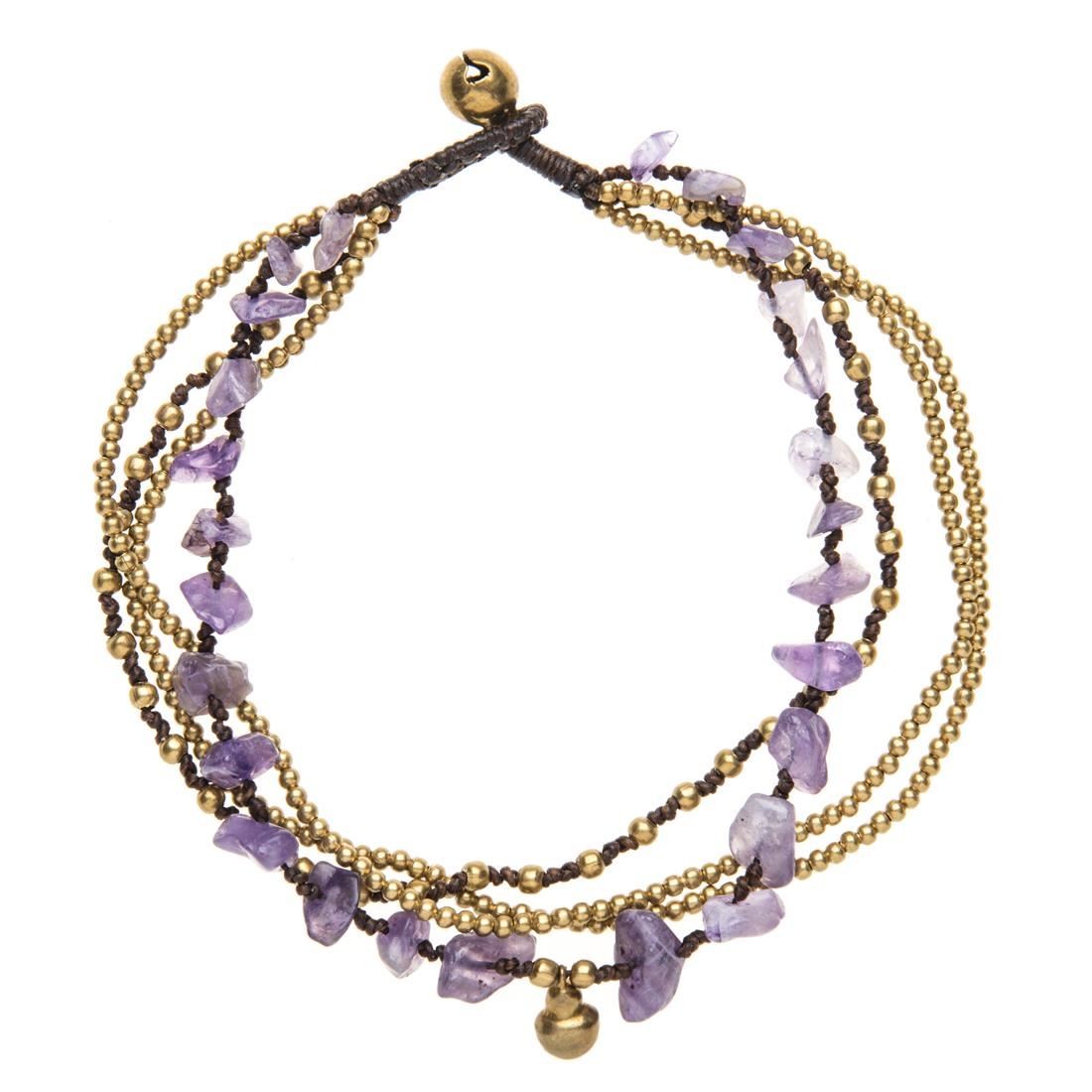 81stgeneration Ankle Bracelet Gold Brass Bell Anklet Amethyst Bead Multistrand