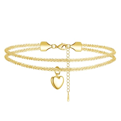 (As show, One size) Heart Anklet for Women, Real Gold Love Ankle Bracelet Foot Jewelry for Her