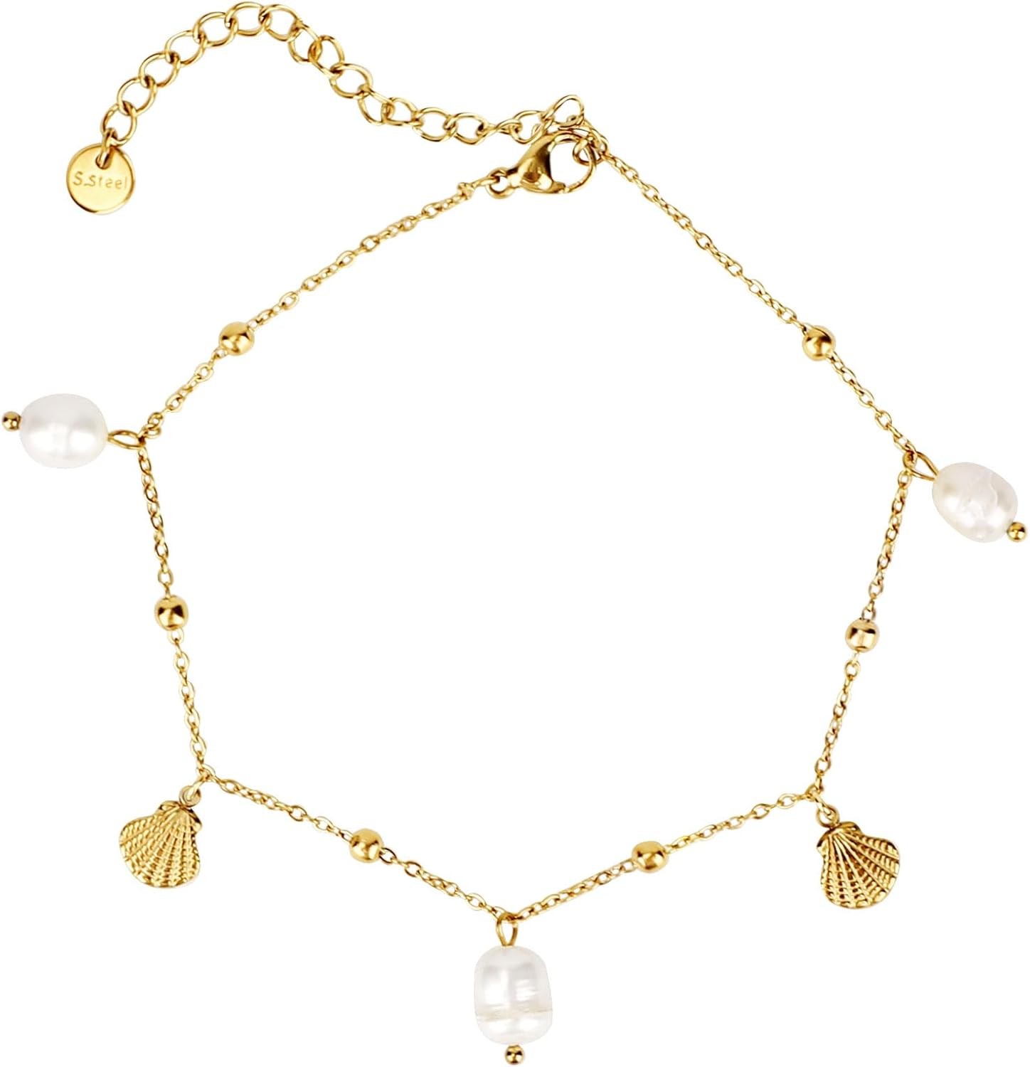 Mikovivi Dainty Anklets for Women, Gold Shell Pearl Charm Ankle Bracelet...