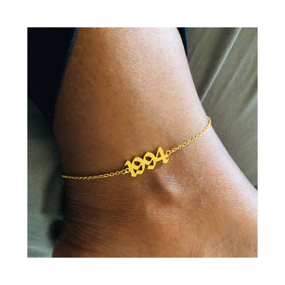 (Gold) Women's 1990-2019 Birth Year Ankle Leg Bracelet Jewelry Stainless Steel Rose Number Anklet
