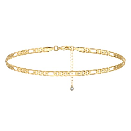 Cangall Gold Women's Anklets, 21+5cm Adjustable Silver Ankle Bracelet Figaro Anklet Chain, Trendy Beach Barefoot Gold Figaro Foot Chain for Summer Holiday, Beach Foot Jewelry Gifts for Women Girls
