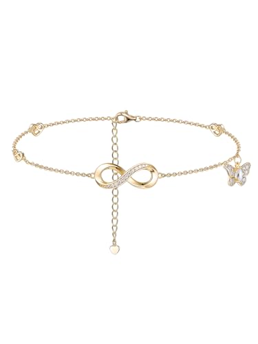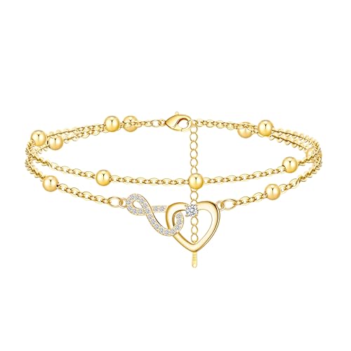 BMMYE Sterling Gold Anklet Ankle Bracelets for Women,Adjustable Gold Anklets for Women Infinity Heart Ankle Bracelet
