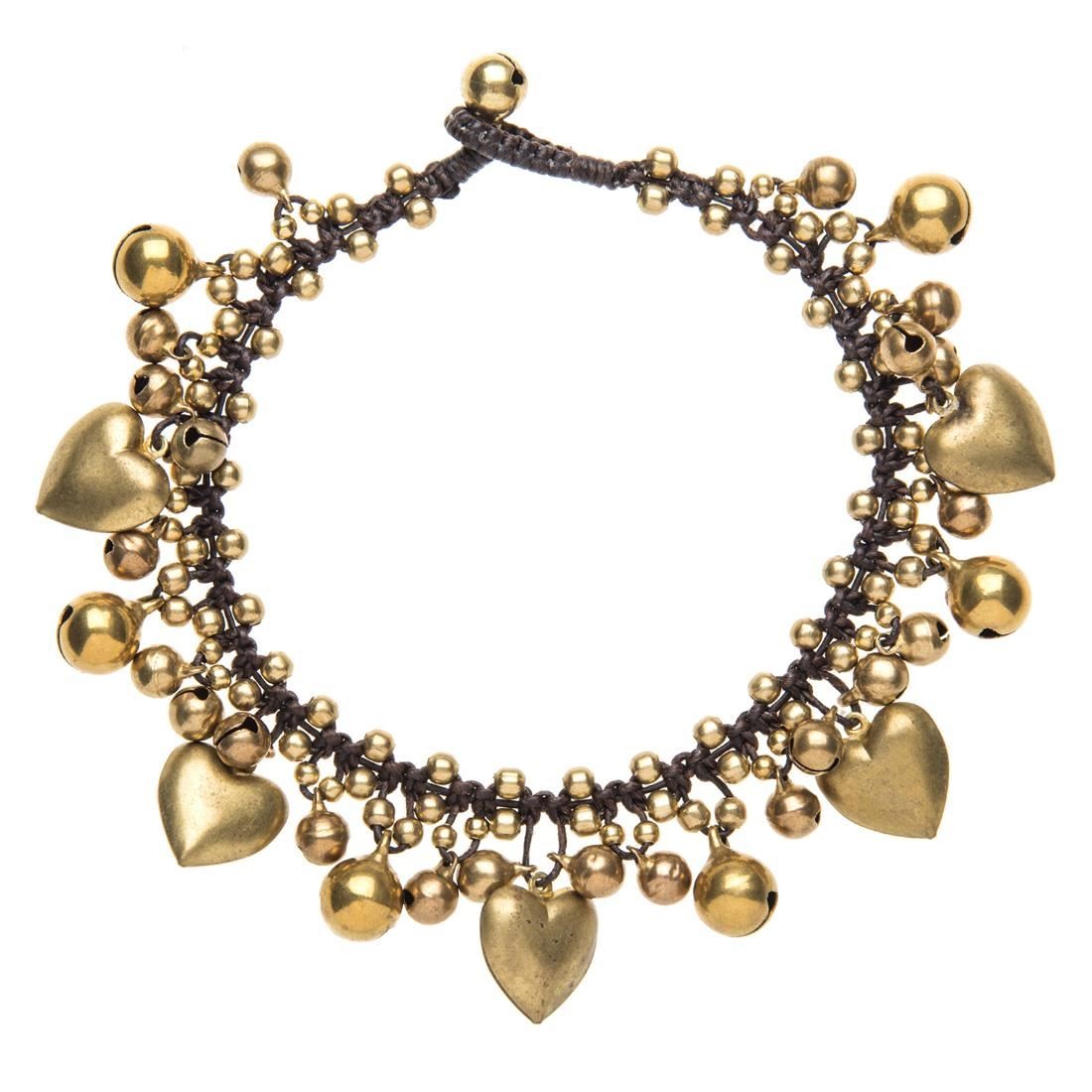81stgeneration Ankle Bracelet Gold Brass Heart Charm Bead Bell Anklet Payal