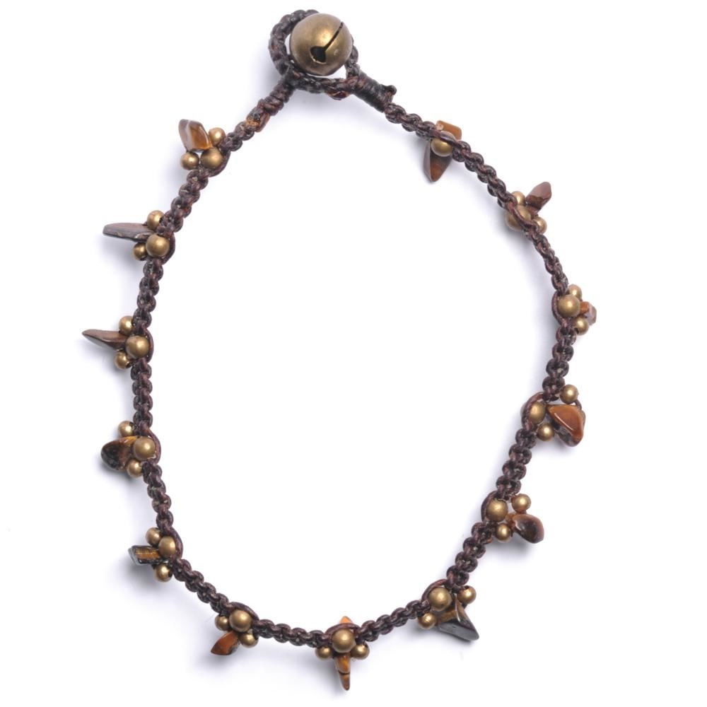 81stgeneration Ankle Bracelet Bell Cord Anklet Gold Brass Tiger Eye Chip Bead