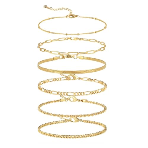 AMBEERT 6 Pieces Gold Anklet for Women - Dainty Beach Foot Chain and Ankle Bracelet Jewelry for Girls