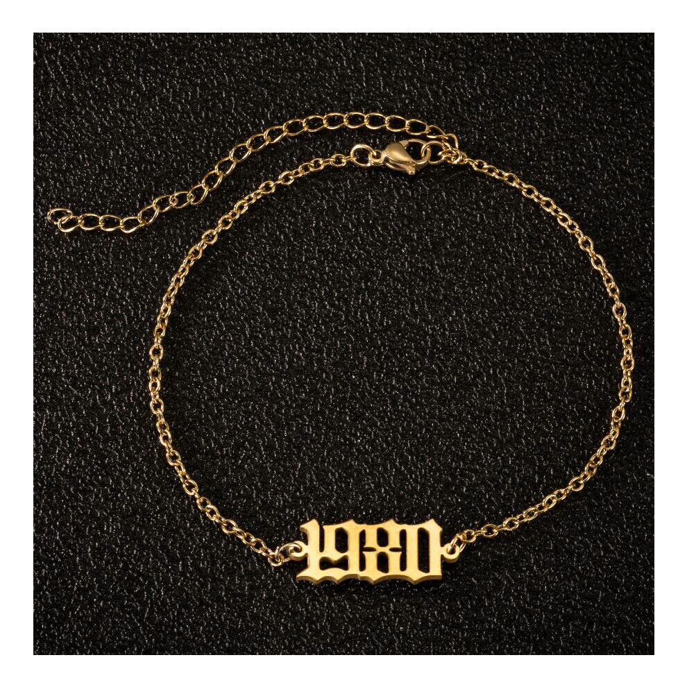 (Gold) Stainless Steel Birth Year Initial Ankle Bracelet Old English Anklets for Women Men 1980 1990 1995 Year Number Anklet Leg Chain