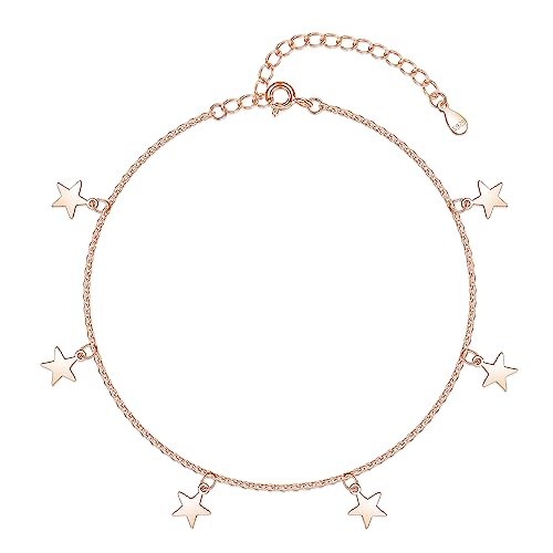 Loutade Silver Anklets for Women, 925 Sterling Silver Ankle Bracelet, Adjustable Beach Barefoot Foot Chain, Summer Holiday Rose Gold Ankle Chain, Classic Women's Star Anklet Beach Jewellery for Girls