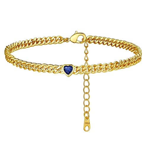FindChic Anklet Chain Birthstone Anklets for Women Feet Bracelet Heart Ankle Summer Jewelry Copper Ankle Bracelets for Womens Gold Cuban Link Foot Chains