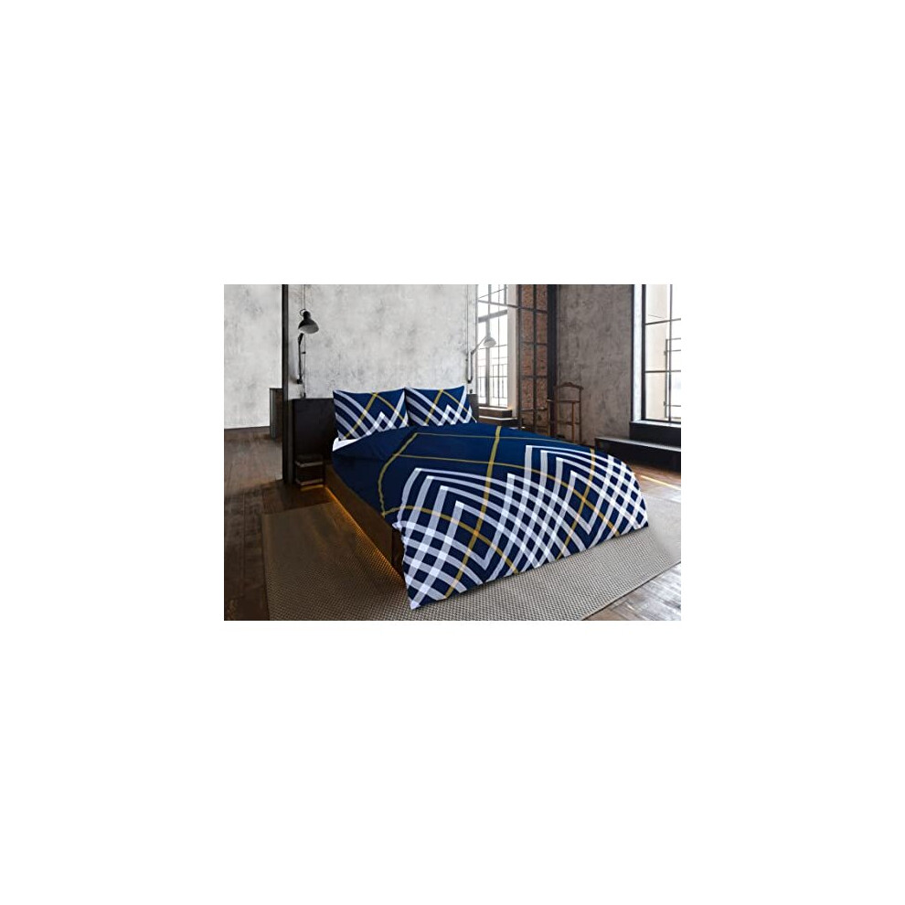 CnA Stores Maxwell Geo Check Duvet Cover & Pillowcase Reversible Easy Care Cotton Blended Bedding Set (KING, NAVY/GOLD)