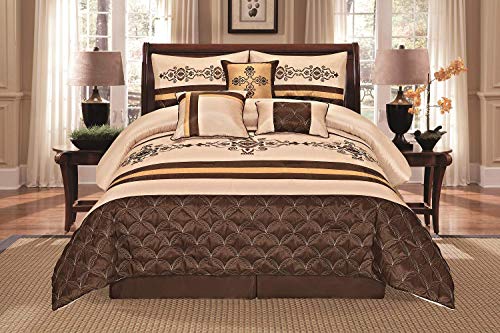 WPM WORLD PRODUCTS MART Jenin 7 Pieces Complete Bedding Ensemble Beige Brown Gold Luxury Embroidery Comforter Set Bed-in-a-Bag Bedding- Yasmen (Queen)