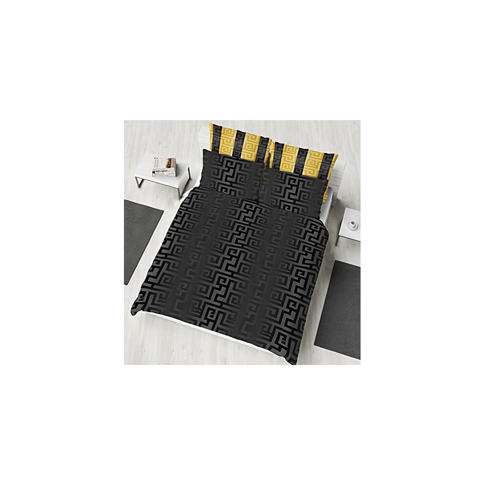 K Collection Athena Duvet Cover - Greek Meander Reversible Bedding Set - Greek Key Design - 100% Cotton - Double - Black/Gold