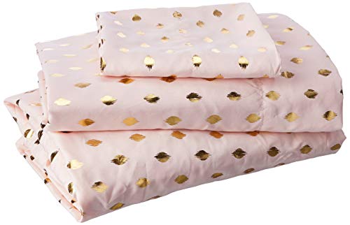 Intelligent Design Microfiber Cozy Bed Sheet Set, Modern All Season Bedding & Pillowcases, Premium 14" Elastic Pocket Fits up to 16" Mattress, Twin Blush/Gold Metallic Dot 3 Piece